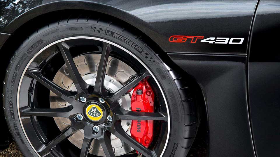 A set of Lotus-tuned Ohlins TTX two-way adjustable dampers are equipped on the Evora GT430. It has a twenty click-adjustment compression and rebound settings, and is 10 kg lighter compared to the ones used in the Evora Sport 410. Ultra lightweight springs from Eibach are also standard, along with front and rear anti-roll bars.