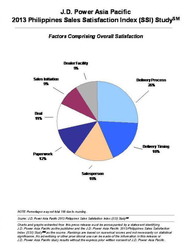 J.D. Power Asia Pacific has released the results of the 2013 Vehicle Sales Satisfaction Index (SSI) Study. The study rates 10 of the major auto brands in the country according to the customer’s purchase experience.