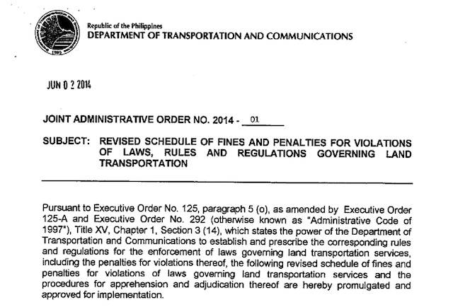 The fine for any violation of JAO 2014-01 Sec. II-e calls for a fine of PhP 5,000. The said accessories will be confiscated on the spot.