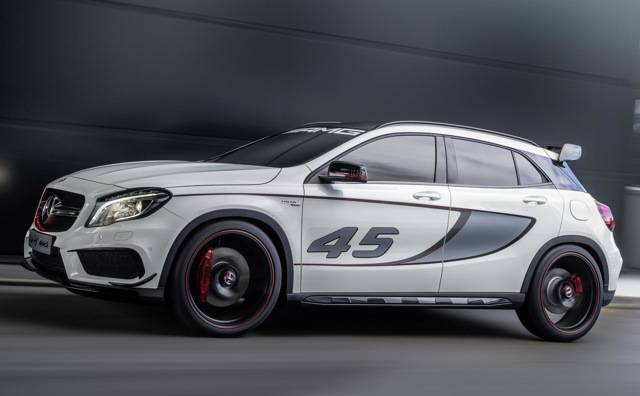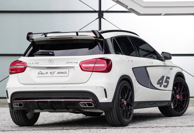 The GLA45 AMG features an bold, distinctive design around the new Mercedes-Benz GLA. The GLA 45 comes powered by the most muscular four-cylinder engine in production: an AMG 2.0-liter turbocharged engine with an output of 360 PS and maximum torque of 450 Newton-meters. As a result, the Concept GLA45 offers unrivalled performance in conjunction with low fuel consumption.