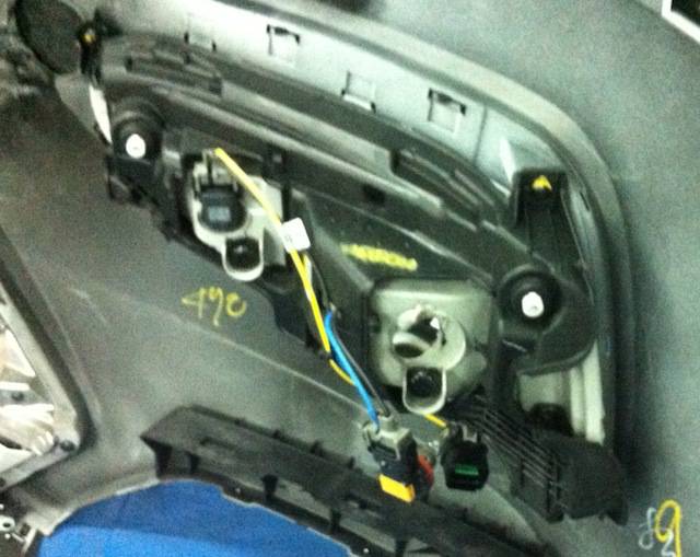However, despite the alleged external flame source, the sockets of the foglamp bulbs (above) had melted independently of the actual fire in the middle of the bumper. So, is it an electrical fire or an external fire?