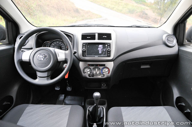 Opening the rather light door, the Wigo does greet you with a well designed, if not clever interior. The dashboard certainly looks better than what you would expect, same goes for the steering wheel (as inspired by the FJ Cruiser) and the 2-DIN DVD/USB/iPod-ready entertainment unit. It has a navigation function but you'll have to buy the antenna and the SD Card with all the maps. Power windows are standard along with power steering and a rather powerful airconditioning system.