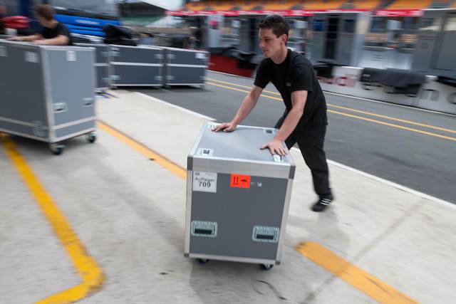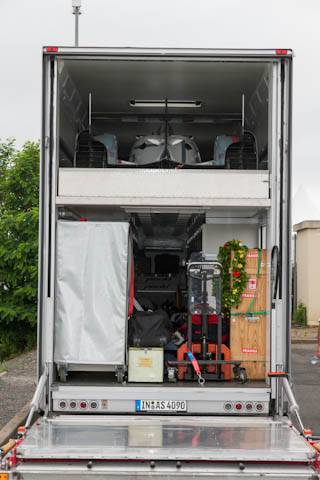 The race cars, the spare parts and other components for the vehicles, all the tools necessary for repair and maintenance, including lifting platforms and garage equipment all travel by air. All of it is stowed in 176 flight heavy duty cases weighing around 38 tons in total.